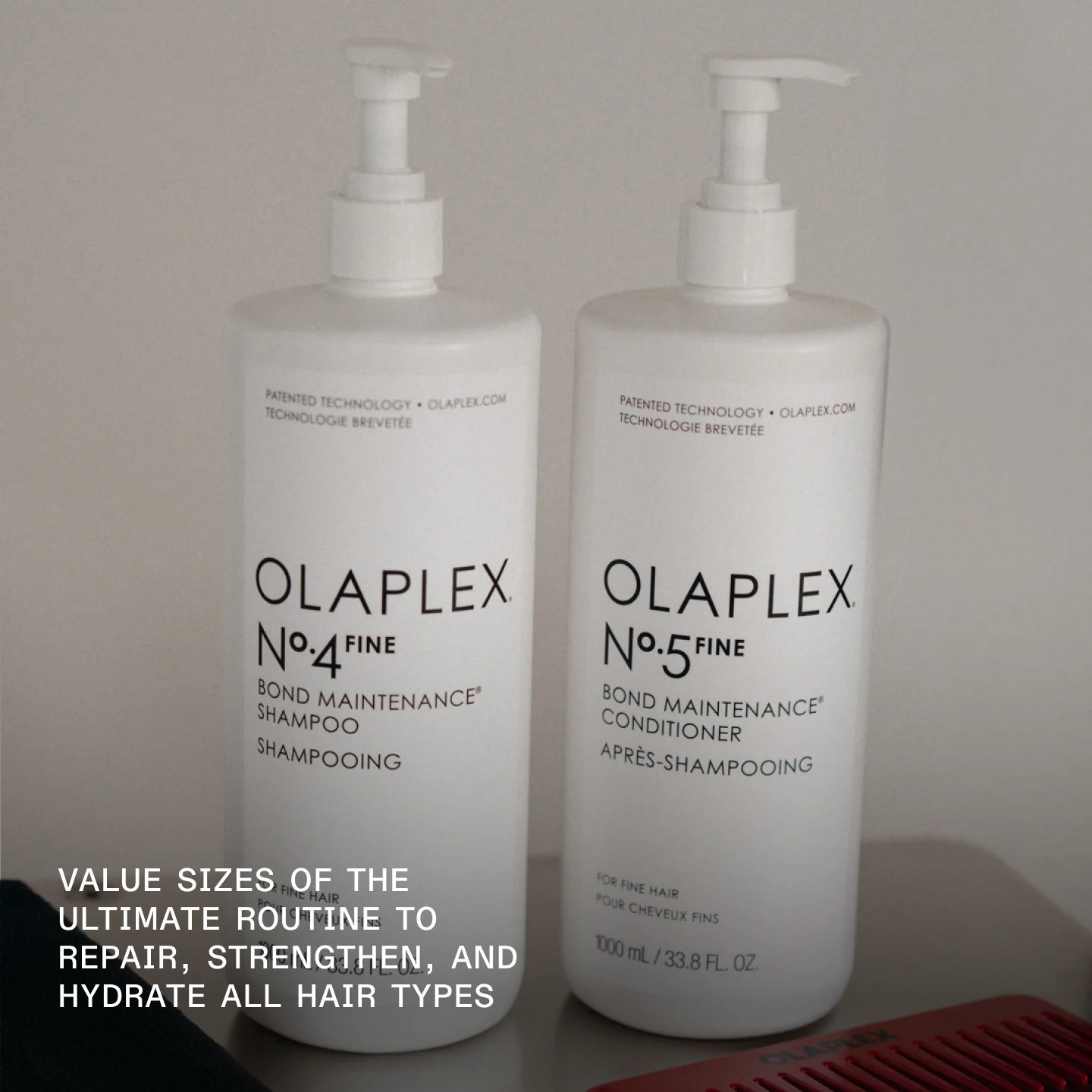 Consigue un cabello fino más fuerte y con más volumen con litros de tamaño ahorro de nuestro champú y acondicionador voluminizador ultraligero para cabello fino, además de un N°.3PLUS de tamaño jumbo. Complete Repair Treatment para reparar los daños en 3 minutos. Esta rutina aporta volumen durante todo el día, fortalece el cabello y lo protege frente a los daños causados por factores cotidianos, el peinado o los tratamientos de salón*. Cómpralos en tamaños económicos para abastecerte y ahorrar, y llévate además una elegante bolsa de tela OLAPLEX.